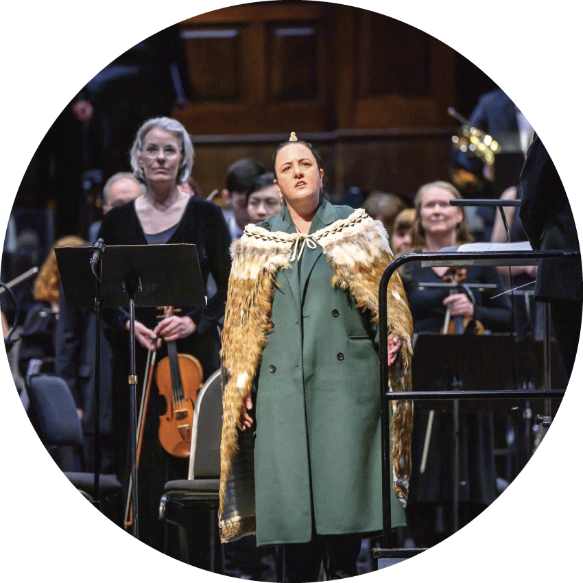 Collaborating with renowned New Zealand composer Dame Gillian Whitehead, who is celebrated as one of Dunedin’s international treasures, we presented her brilliantly crafted composition The Journey of Mataatua Whare: The House That Came Home. Commissioned by and written in collaboration with Tessa Petersen, the moving composition resonated deeply with our Town Hall audience.